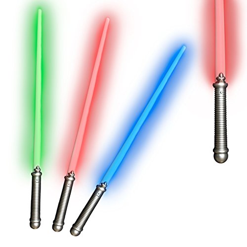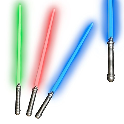 -. Feature : Each pack comes with 6 28" long super bright light sabers / Contains 2 red, green, and blue light sabers / On/Off LED feature creates a realistic light-up experience / Great for birthdays, Halloween, parties, and much more / 2 AA batteries are included and installed