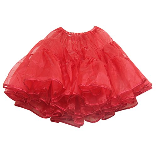 Fabric :PolyesterPetticoat consisting of 2 layers and three stages.Of the last stage dress size is 9m.Size: fits for size 34 - 46;Total length: about 56cm;