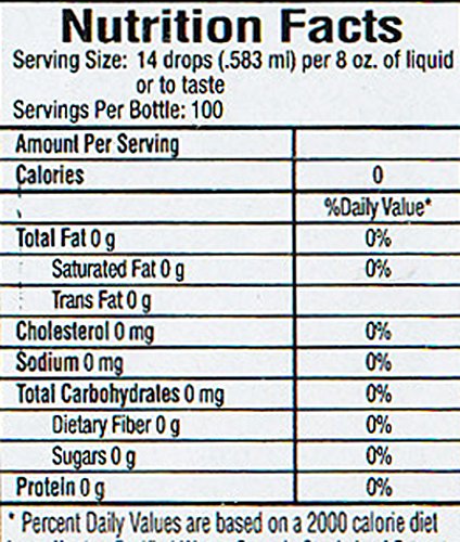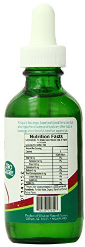 ReleaseDate : 2013-11-19 Studio : Sweet Drops Publisher : Sweet Drops Binding : Grocery Product Description Wisdom Natural SweetLeaf Sweet Drops Cola Description: . All Natural - Zero Calories. Add to sparkling water for a great tasting soda!. 100 Servings SweetLeaf Liquid Stevia is a natural convenient and healthy sweetener. It contains no calories or carbohydrates and may be used in tea coffee smoothies protein shakes or any recipe. SweetLeaf Liquid Stevia is delicious has no aftertaste and is diabetic friendly. From drinks to desserts appetizers to entrees and so much more the options are endless. Disclaimer These statements have not been evaluated by the FDA. These products are not intended to diagnose treat cure or prevent any disease.(Note: This Product Description Is Informational Only. Always Check The Actual Product Label In Your Possession For The Most Accurate Ingredient Information Before Use. For Any Health Or Dietary Related Matter Always Consult Your Doctor Before Use.) Ingredients: Wisdom Natural SweetLeaf Sweet Drops Cola Directions. Just a few drops. SweetLeaf Liquid Stevia can turn a boring bottle of water or virtually any other food or beverage into a flavorful healthier experience. Refrigerate after opening. Supplement Facts. Serving Size: 14 Drops (0.583 mL). Servings Per Container: 100 Amt Per Serving% Daily Value Calories0 Total Fat0 g0% Saturated Fat0 g0% Trans Fat0 g Cholesterol0 mg0% Sodium0 mg0% Total Carbohydrates0 g0% Dietary Fiber0 g0% Sugars0 g Protein0 g Other Ingredients: Purified water organic stevia leaf extract natural flavors vanilla extract natural caramel color natural aromatics.UPC: 716123126403 U 0