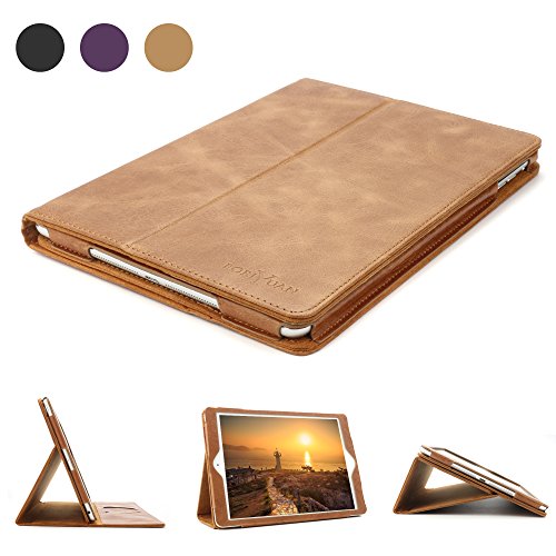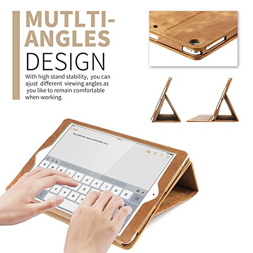Smart Protective Cover: The back of this case is made of vintage genuine leather material, it can prevent your iPad from slipping down from your hands. Clamshell design gives your iPad a full behind and back body protection.