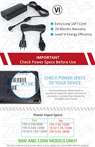 -. Feature : POWER SPECS : Output Max: 19V 6.3A 120W / Original Asus Charger Laptop AC Adapter Power Cord Replacement by PWR+ / (Some ASUS gaming laptops require chargers with output 7.9-9.5A 150-180W - not compatible with this charger) / FEATURES: Say Goodbye to Charging with Extension Cords and Sitting on the Floor near Outlets. Only Pwr+ Chargers Have Total Cord Length Extended to 14 Ft and it is Free of Charge ($6.90 value) / ABOUT PWR+: Powering Millions of Laptops, Tablets and Electronic Gadgets and a go-to brand for premium replacement chargers and accessories since 2007. Pwr+ chargers manufactured with the highest quality materials and include multiple smart features safeguarding against IV - incorrect voltage, SC - short circuit, IO - internal overheating . CE/FCC/RoHS certified. / COMPATIBILITY: Asus GL551J GL551JW GL552VW GL752V GL752VW GL753VD GL753VE G55VW G55 G55V G50 G50V G50VT G51 G51J G51JX G51VX G72GX; F554L F554LA G550JK G56JK K501LX K501UX N550JA N550JK N550JV N550JX N551JQ X550J X550JK ZX53VW; A53E A55A A55VD K45 K45VD K45VJ K53 K53E K53S K53SV K55 K55A K55V K55VD K55VJ K55VM K73 N46 N46VJ N46VM N46VZ N53 N53SM N53SN N53SV N55 N55SF N55SL N56 N56JN N56JR N56V N56VJ N56VM N56vz N76 N76vj N76VM N76vz U47VC U56 U56E X53E X750J X83V; Q550 Q550L Q550LF X550 X750JA / MONEY BACK GUARANTEE - We are USA based Company that Wants your Repeat Business so, if You Do Not Like our Product or Don't Want It For Any Reason, We Will Happily Accept The Return and Give You Your Money Back. No Questions Asked. 30 Days Money Back Guarantee - 24 Months - Exchange - Phone Service is Available (Hint: Always Check Sellers Location Info to Guarantee Warranty Claims after 30 Days)