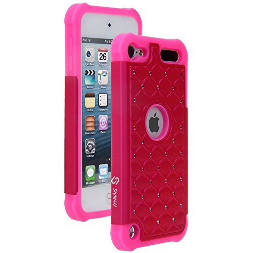 Introducing Style4U Slim Fit Bling Hybrid Armor Case for iPod Touch 5 / iPod Touch 6 Dual Layer Protection This sturdy form fitted case is constructed from high quality polycarbonate (PC) and soft silicone skin to provide maximum protection. It will protect your phone from bumps, drops and other mishaps.