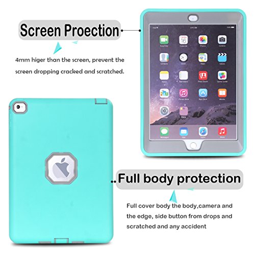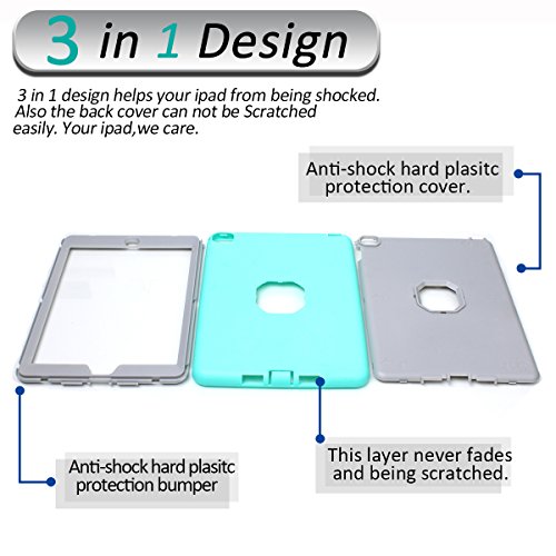MAKEIT CASE iPad Air 2 Shockproof Case, Shock-Absorption / High Impact Resistant Hybrid Protective Case Cover for iPad Air 2 /iPad 6 Generation (T-Mint Green/Gray)