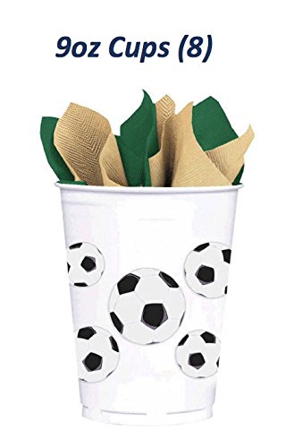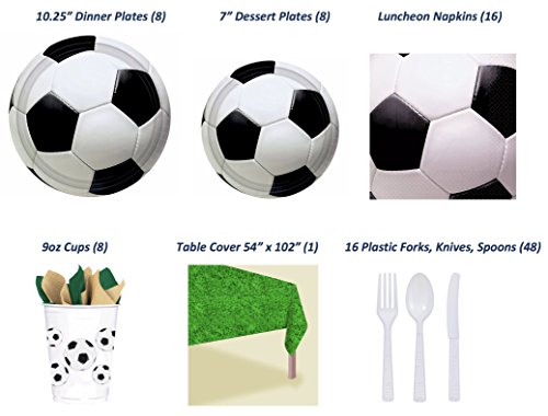 Soccer Party Complete Party Supply Bundle (Serves 8): 8 Dinner & 8 Dessert Plates, 16 Napkins, 8 Cups, Table Cover, Cutlery (16 knives, 16 forks, 16 spoons) - 89...