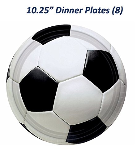- Soccer Party Complete Party Supply Bundle (Serves 8): 8 Dinner & 8 Dessert Plates, 16 Napkins, 8 Cups, Table Cover, Cutlery (16 knives, 16 forks, 16 spoons) - 89 Pieces Total
