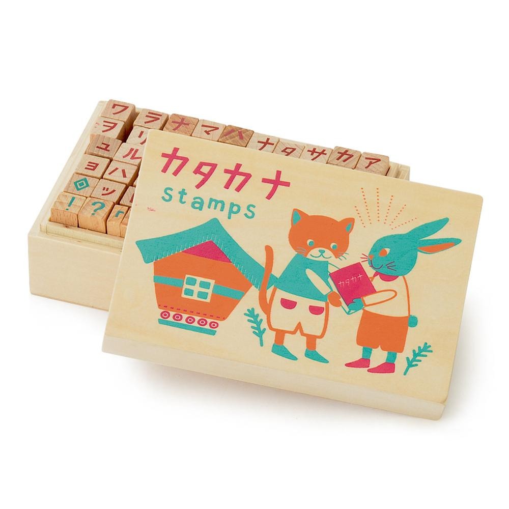 手彫りしたようなカタカナのはんこです。木箱入りです。