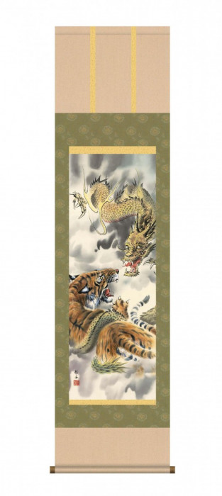 古来、悪災除祓の象徴として崇められてきた双璧の題材が一堂に揃った作品です。製造国:日本 素材・材質:洛彩緞子本表装、新絹本、軸先:陶器 商品サイズ:約1884(紐除く)×596(軸含む)mm 重量:535g ※サプライヤー直送品 ご注文後7~8営業日後の出荷となります【商品名】長江桂舟 開運掛軸(尺五) 「龍虎図」 化粧箱入り D3-016