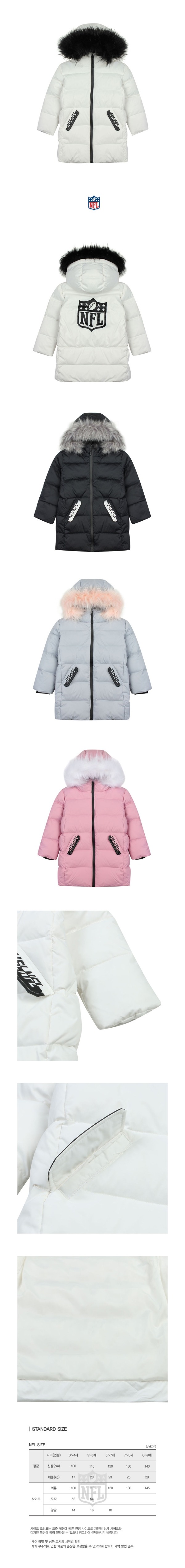 엉덩이 살짝 덮는 기장의 오리털 점퍼.탈부착 가능한 인조퍼 트리밍과 포켓 그래픽이 포인트.뒷목 안쪽과 포켓안에 아이렉스 지모를 덧대 주어 따뜻하게 착용가능해요.몸판 안쪽에 부착된 네임테에 이름, 연락처 기재가능해요^^