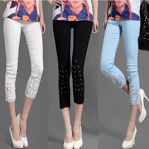 | 商品名 | 裾ラインストーン&レース 7分丈 カラーパンツ パギンス スキニー レギンス レギパン |