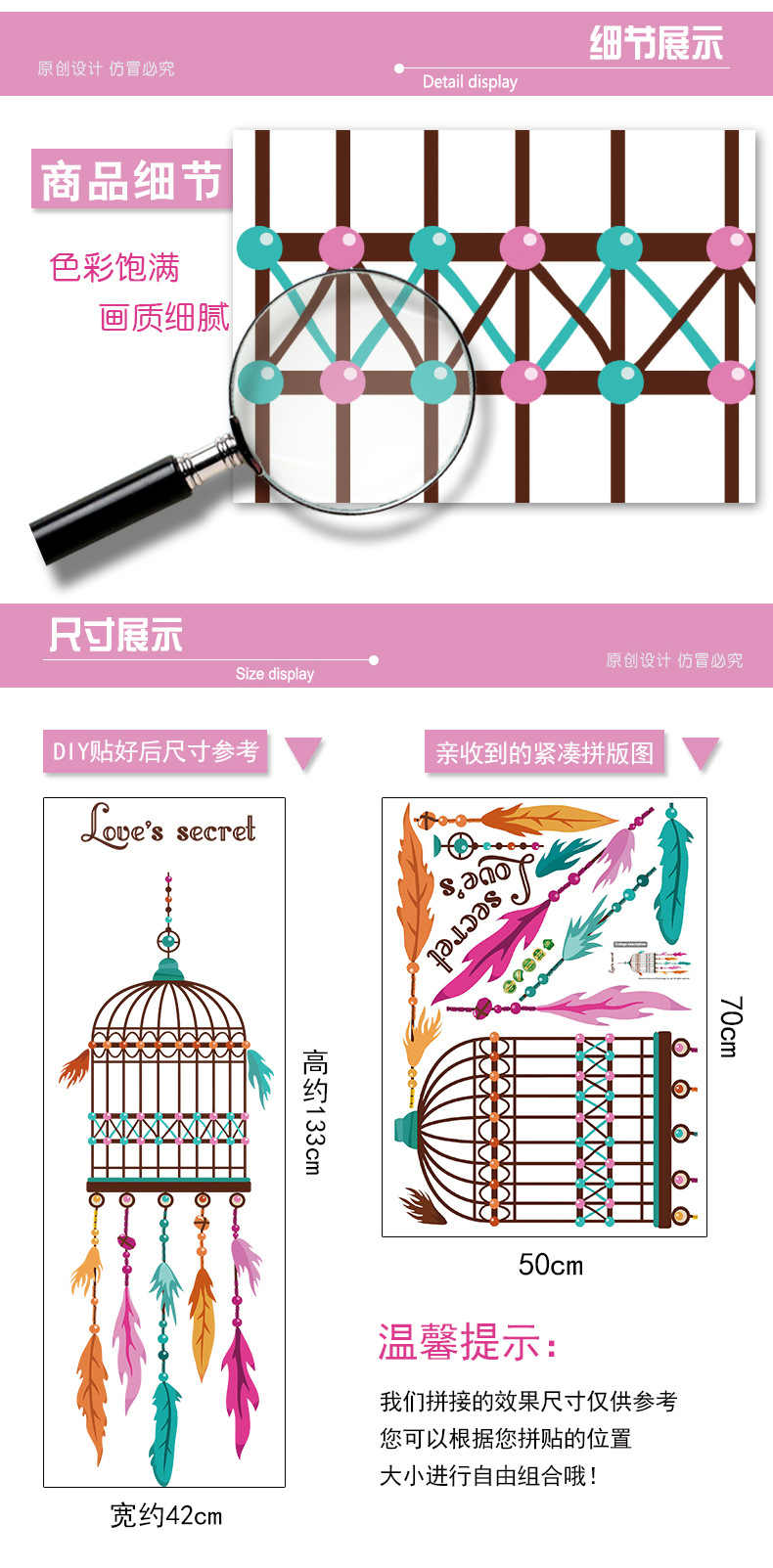 此款产品色彩亮丽,材质为PVC透明膜,并且采用进口底纸,既环保又防水,图案丰富富有创意,在居室里贴上一张,立刻让平淡的空间散发出动感与活力的气息,给人以舒适与惬意的享受!客户也可以根据自己的喜好设计风格。由您主导自己的家具设计。u0026nbsp;