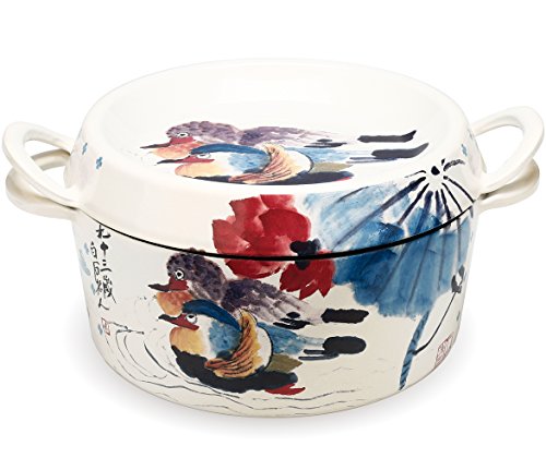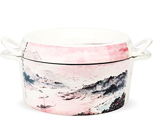 ●Art of the Cooking, Art of the Table: We show Chinese art masters paintings on the enameled cookware. ●Magnificent handcraft: Our cookware is pure handmade, each piece of cookware is a elaboration of craftsmans'. ●Glittering Surface: There is a transparent protection layer on the surface of our cookware. The protective layer not only defends the painting from harm, but also allows the cookware to glittering when it's exposed to the light. ●High-quality Material - Cast Iron: Cast iron casserole construction provides even heat distribution and superior heat retention.Enameled cooking surface ensures easy food release and quick cleanups. Enamel exterior can withstand everyday use. ●Wide range of application: Applicable to any stove, including induction cookerand oven (except microwave oven). Oven safe up to 500º F.Feature
