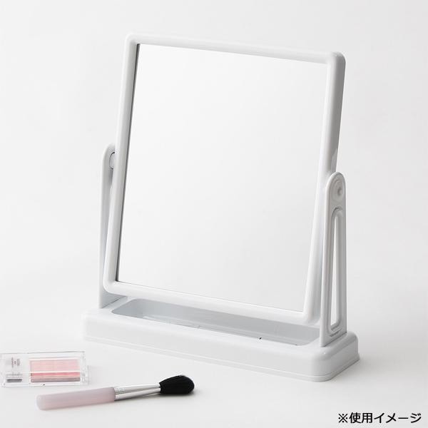 お顔全体がしっかり映るミラーサイズ。角度調節可能で、ベース部分の収納トレイにはメイク用品やアクセサリーを置くことができます。 |