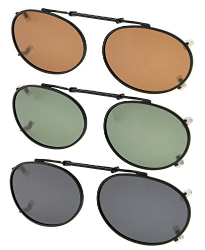 Eyekepper Grey/Brown/G15 3-pack Oval Clip-on Polarized Sunglasses 1 15/16"x1 3/16"