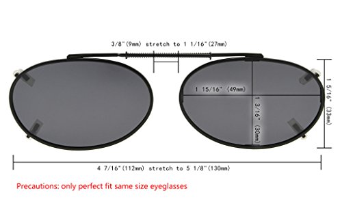 - PRODUCTS DIMENSION-Frame material: Metal, Lens width: 1 15/16" (49mm), Frame width: 4 7/16"(112mm) stretch to 5 1/8"(130mm), Lens height: 1 3/16" (30mm), Frame height: 1 5/16" (33mm), Bridge (DBL): 3/8"(9mm) stretch to 1 1/16"(27mm), only perfect fit same size eyeglasses