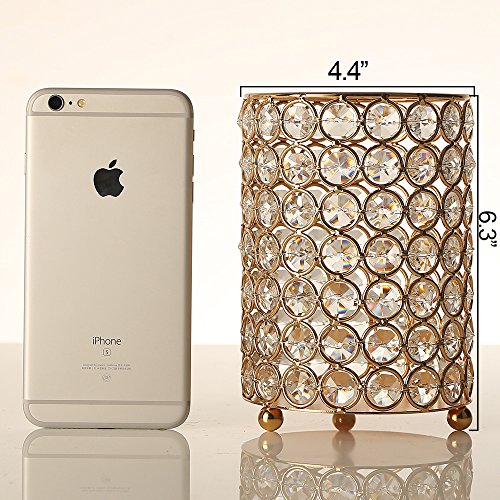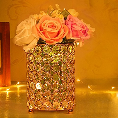 VINCIGANT Gold Crystal Candlesticks Decorative Vase with Warm White String Light for Wedding Centerpeices Home Holiday Decorations 6.3 Inches Tall