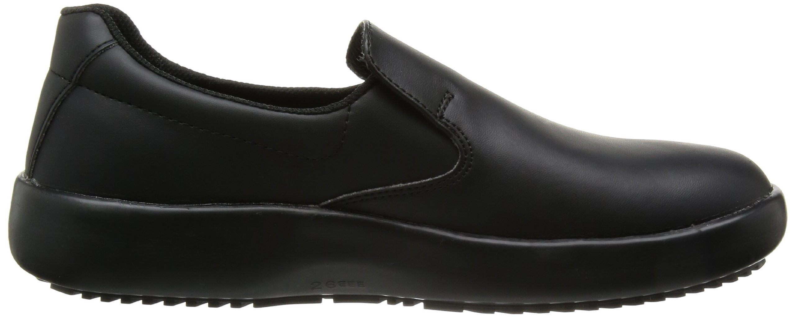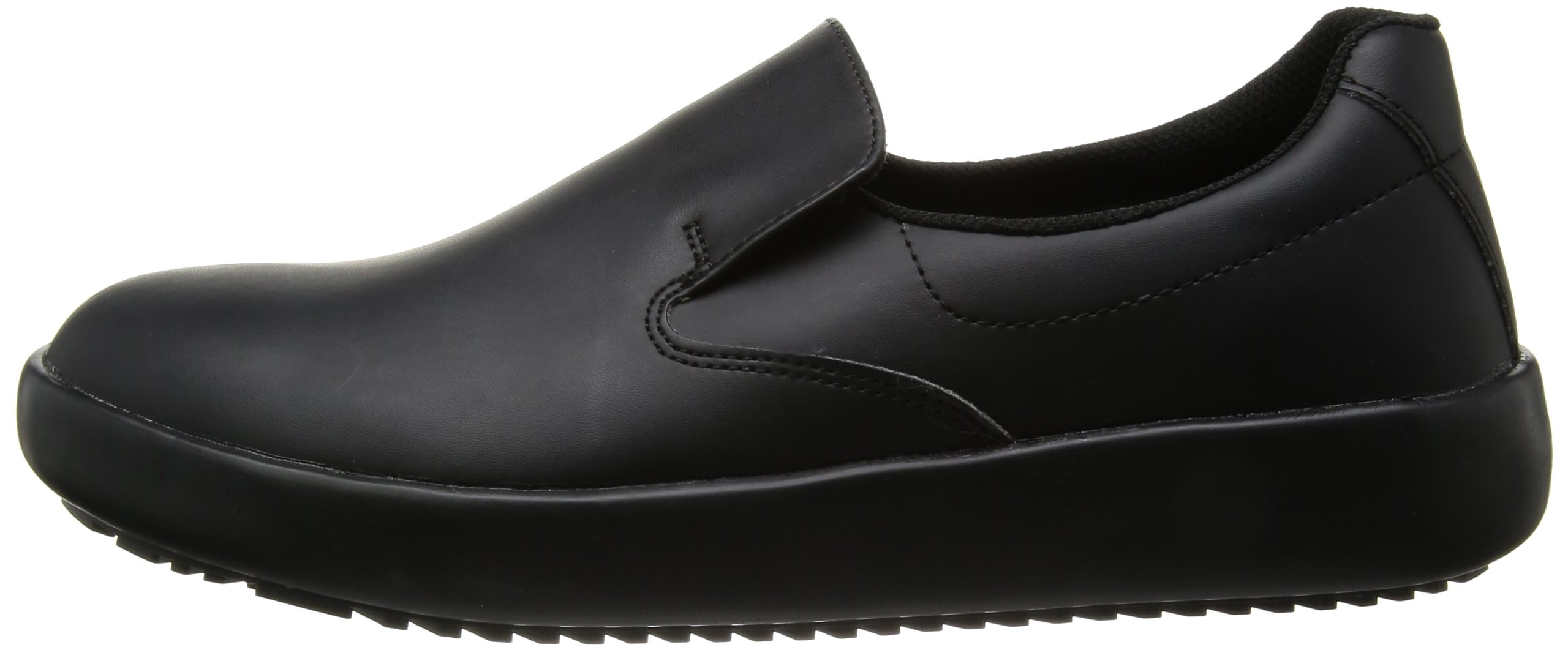 Working on a floor surface which is particularly slippery with oil and water, it has signs of three places visually recognizable on the sole of the shoe.