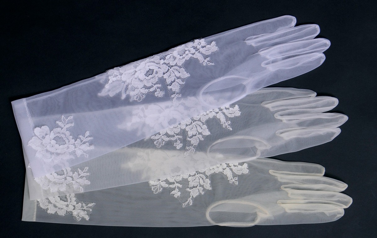 お肌がうっすら透けて、上品にみせてくれるオーガンジーのグローブです。
