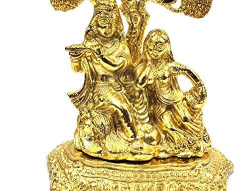 AMBA HANDICRAFT white metal antique statue of radha krishna gold polish showpiece india temple handicraft for gift birthday special diwali religious decorative for interior india home pooja work.X070