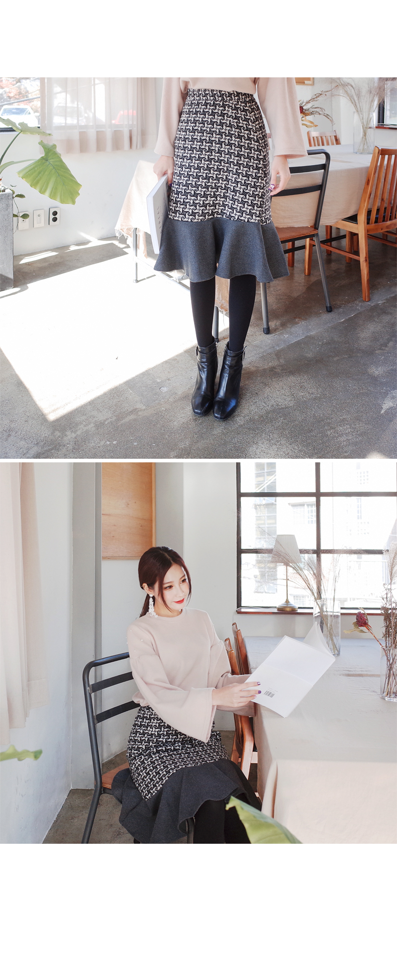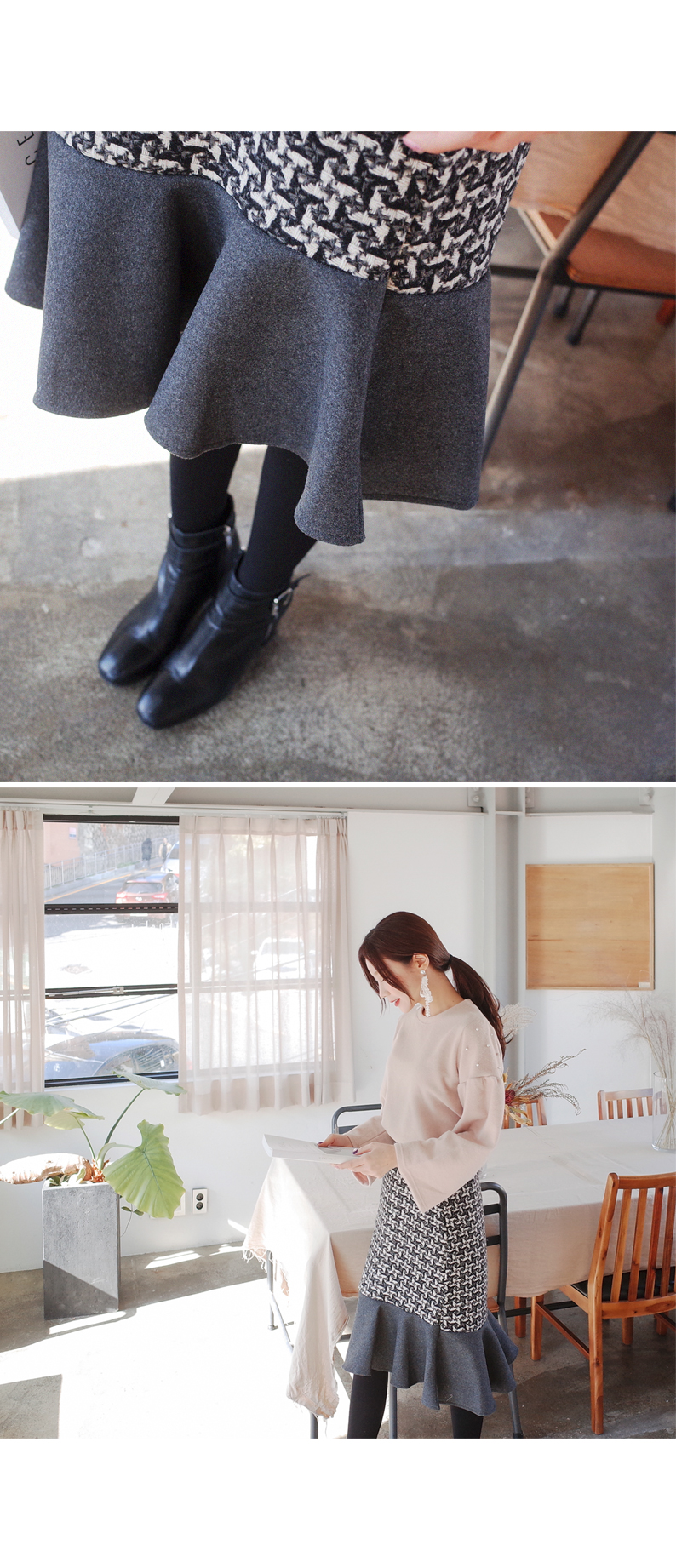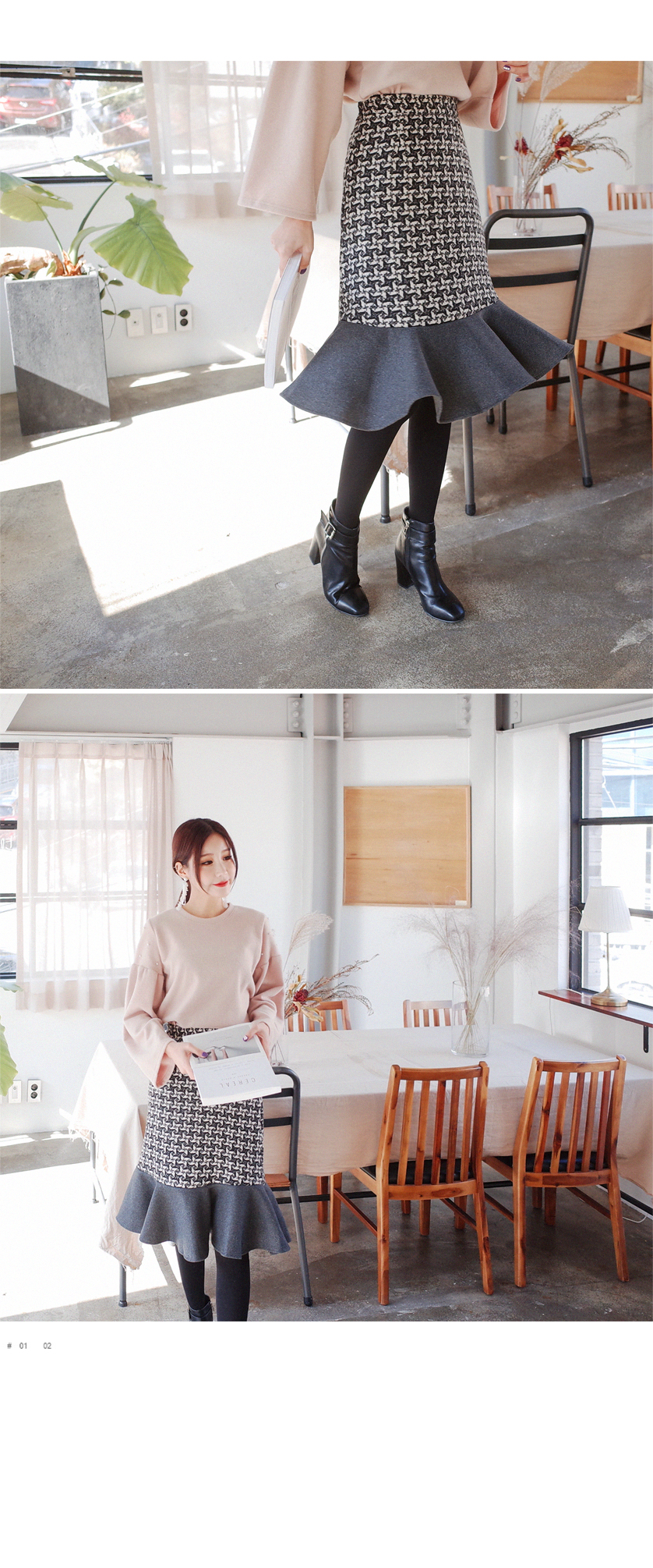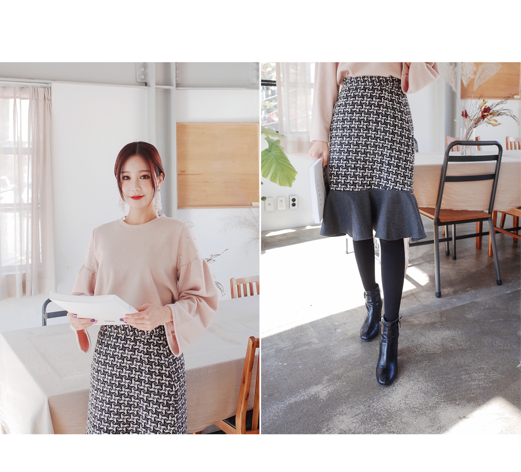 프릴이배색 스커트