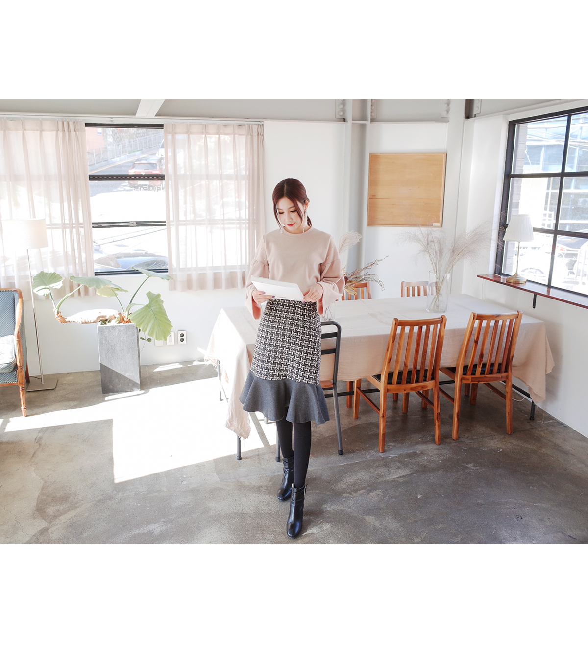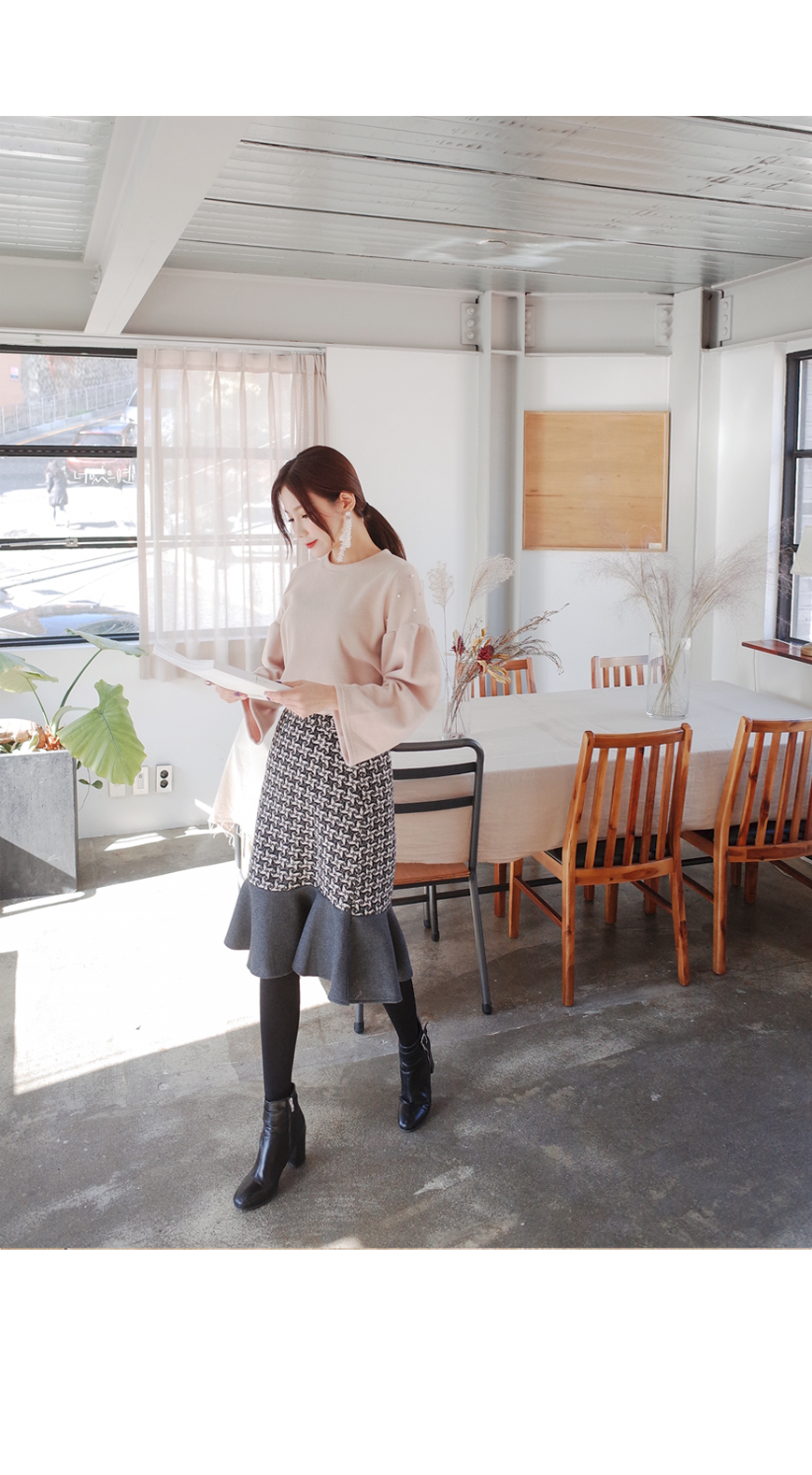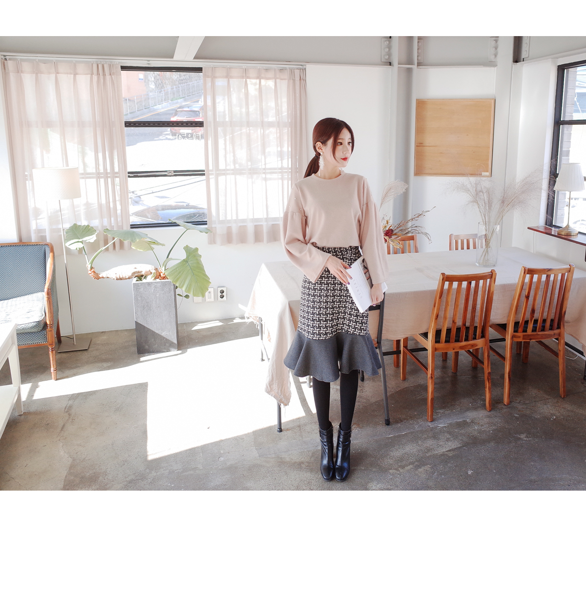 무릎까지오는길이감으로 짧지않아 한층 더 고급스러운 느낌이에요