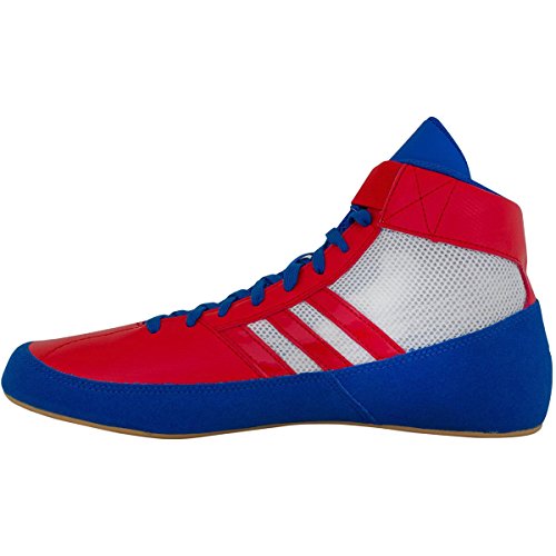 -. Binding : Misc. -. Brand : adidas -. Color : Blue/Red/White -. Department : mens -. Feature : Features a lightweight synthetic suede and synthetic leather offering lasting support / Full length rubber sole providing superior grip / Elasticized lace straps help keep laces tied and secure / Single layer of mesh allows your feet to breath and stay comfortable / Lightweight, durable, and comfortable while being built to work hard -. Label : Adidas -. Manufacturer : Adidas -. MPN : 221-AQ3324 -. NumberOfItems : 2 -. PackageQuantity : 1 -. PartNumber : 221-AQ3324 -. ProductGroup : Sports -. ProductTypeName : SPORTING_GOODS -. Publisher : Adidas -. Studio : Adidas -. Title : Adidas HVC 2 Wrestling Shoe