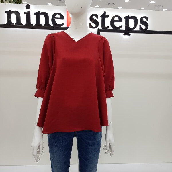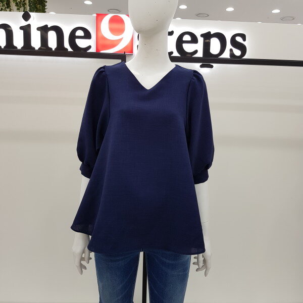 심플하고 색감이 예쁜 퍼프 브이넥 솔리드 블라우스입니다