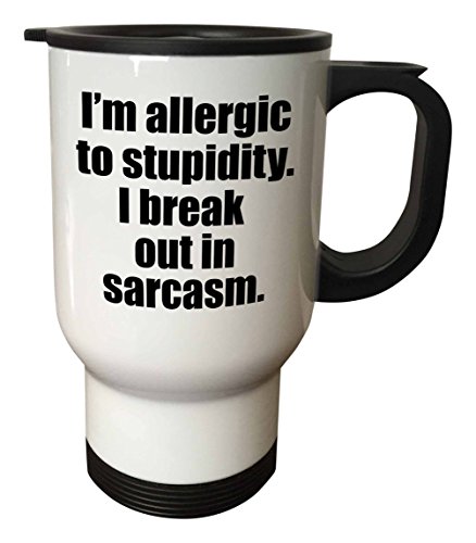 3dRose tm_171937_1 I'm Allergic to Stupidity I Break Out in Sarcasm Travel Mug, 14 oz, White