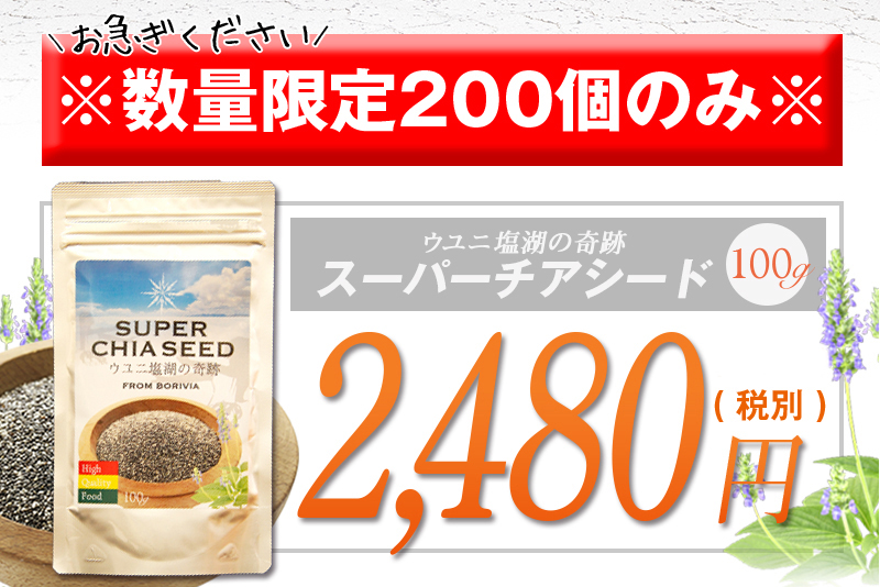 | 商品名 | スーパーチアシード ウユニ塩湖の奇跡 100g |