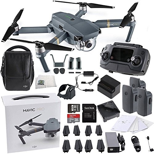 -. Feature : Fly for miles. From your pocket; Inside the Mavic's pocket-sized remote controller is DJI's brand new OcuSync transmission technology, with a range of 4.3mi (7km) and Full HD 1080p video streaming; No bumps and scrapes When you know what's in front of you, you won't bump into it. The same is true of the Mavic. Using FlightAutonomy it can see obstacles as far away as 49ft (15m) in front, so that it can fly at up to 22mph (36kph) while avoiding the things it sees. / Absolute Precision; FlightAutonomy technology means the Mavic can hover precisely in more environments, and automatically land almost exactly where you took off. Stay flying longer; Why fly for 10 or 15 minutes when you can fly for up to 27? With the Mavic you can. / Use every single pixel; The Mavic is the only drone of its size to carry an integrated high-precision 3-axis mechanical camera stabilization system, giving you crystal clear photos and smooth videos, without losing a single pixel. True 4K video. No compromises; When you have a 4K sensor, you expect 4K results without compromises. Every shot you take with the Mavic Pro can be up to 4K, captured at 30 frames per second. / Photos with altitude; Everyone loves a good photo. Whether you just want to take a snap or are building up your portfolio, the Mavic's 12-megapixel camera with Adobe DNG RAW support is ready to shoot. Get in the frame; Get selfies like you've never seen before with Gesture Mode. With the Mavic in the air pointing at you, a gesture is all it takes to take a photo. / Includes: Mavic Pro Quadcopter - Remote Controller - 3 Intelligent Flight Batteries - 5 x 8330 Folding Propellers - Gimbal Clamp - Charger - AC Power Cable - 16GB microSD Card - Micro-USB Cable - RC Cable with Lightning Connector - RC Cable with Micro-USB Connector - 2 RC Cable Slider - Charging Hub - Mavic Shoulder Bag - 32 GB Card - Landing Gear Stabilizers - Memory Card Reader - Cleaning Cloth