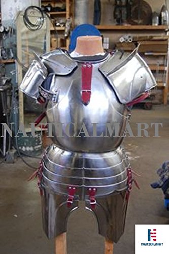 Studio : NAUTICALMART INC Publisher : NAUTICALMART INC Product Description Reenactment Steel Cuirass Front Back Medieval Breastplate, The breastplate is the front portion of plate armour covering the torso. Tough Leather Straps Held With Metal Rivets. It has been a military mainstay since ancient times and was one of the last pieces of functional armour to be abandoned with the development of firearms, because it protected the vital organs without limiting mobility. Custom Size Armor Can Order Direct To NAUTICALMART INC. Manufactured Sold By Nauticalmart Inc. 0