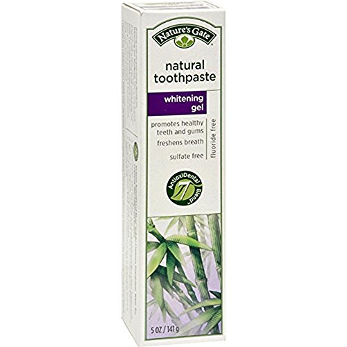 Natures Gate Natural Whitening Toothpaste Gel, 5 Ounce -- 6 per case. This gel toothpaste is specially formulated with bamboo Powder and Baking Soda to gently polish teeth for a whiter, brighter smile. Infused with Golden Seal, Licorice and Sage for their soothing, anti-inflammatory benefits, our great-tasting toothpaste will leave your mouth feeling clean and refreshed. Shelf Life: 730 days fluoride-free