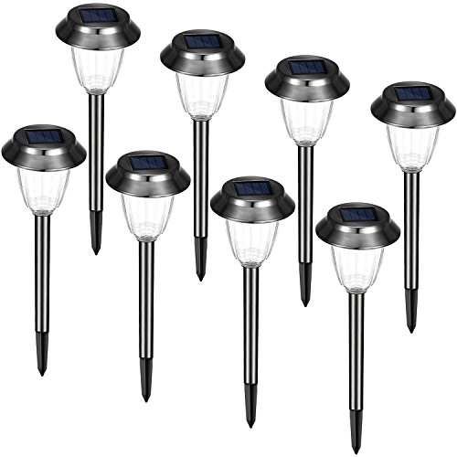 DURABLE CONSTRUCTION: Featured by an anti-rusty stainless steel body and crystal plastic lens, this IP44 Solar Garden Light is resistant to the influence of bad weather and corrosion. Besides, it blends well with your garden and path with its classic look.