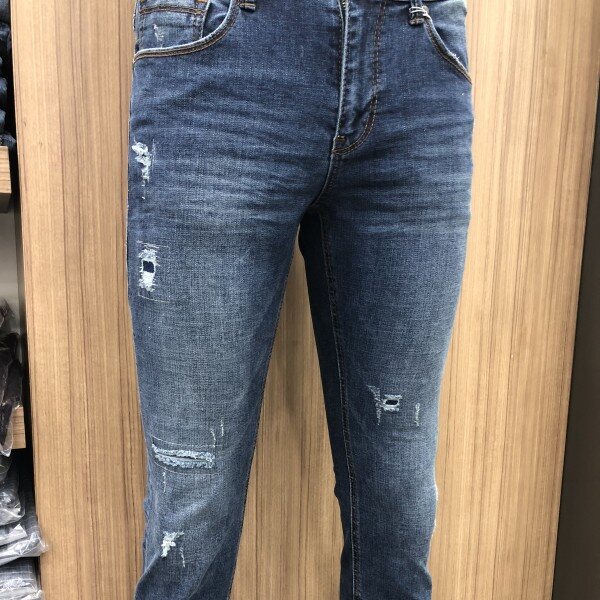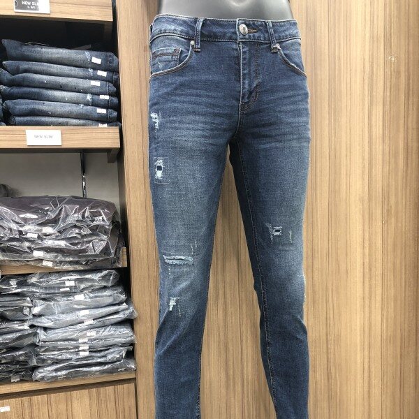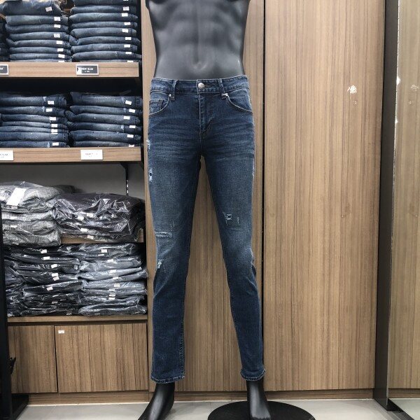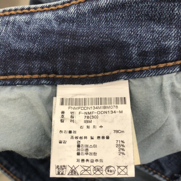 베이지 컬러가 은은하게 올라오는 미디움인디고 컬러와 강한 스톤 워싱,고급스러운 엠보캣과 구제위 스티치장식까지 다양한 워싱아 들어간 스타일. 뒤허리 안쪽에 밴딩처리가 되어있어 허리쪽에 부담이 없고 한층 더 편안한 착용감을 느낄 수 있는 아이템