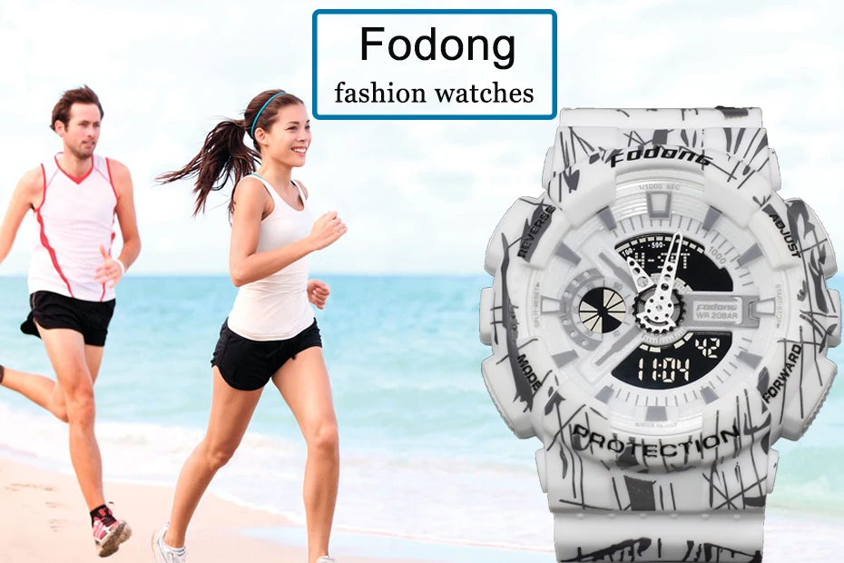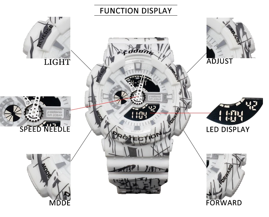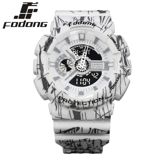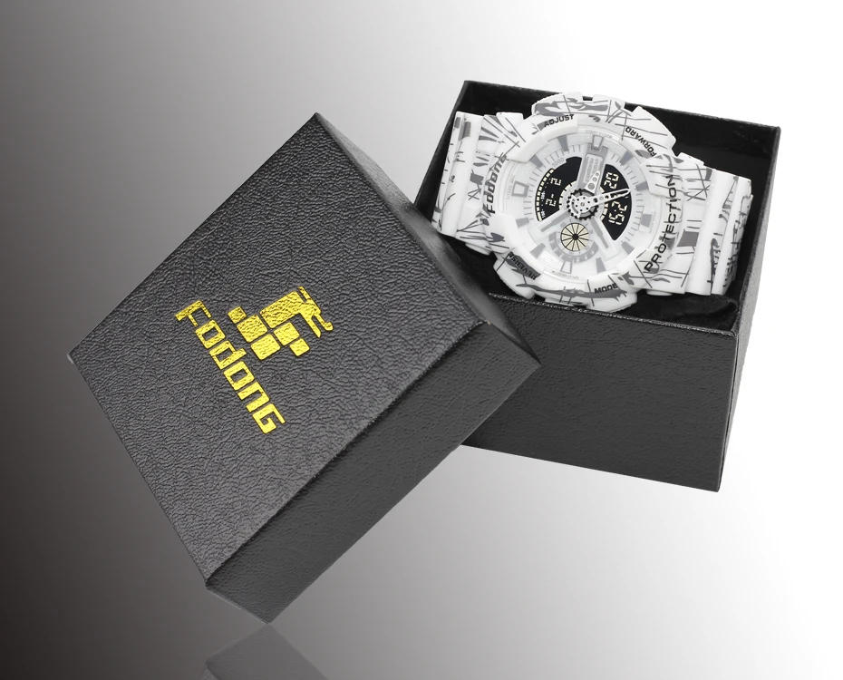| [해외] Fodong 패션 드레스 방수 화이트 Relogio Masculino 고무 듀얼 디스플레이 라운드 스포츠 시계 남성 S-충격 디지털 Uhr |