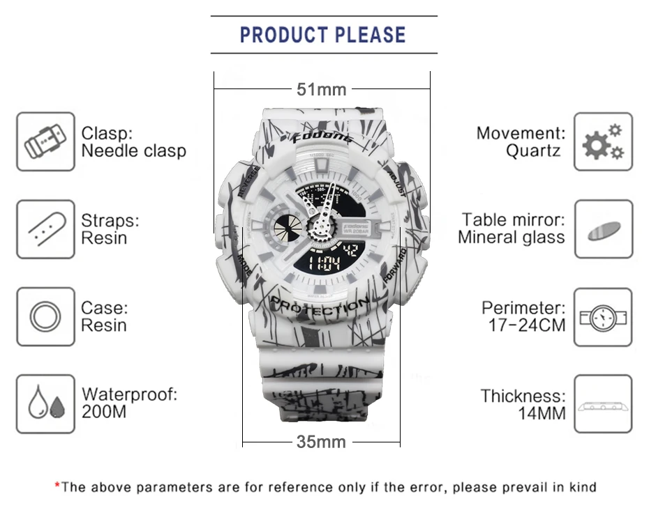 상품 내용 Fodong 패션 드레스 방수 화이트 Relogio Masculino 고무 듀얼 디스플레이 라운드 스포츠 시계 남성 S-충격 디지털 Uhr 주의: 제품 100% 현물 촬영, 다른 표시 생성합니다. 표준 색상 물리적. 감사합니다! > > 특별 참고 -백라이트, 달력 날짜, 정지 시계, 리피터 및 경보 > > 방수 사양 시계 진짜 30 메터 방수, 세척 또는 수영복, 수영, 다이빙. 대한 배송 모든 국가에 무료 배송 통해Aliexpress 표준 배송추적 기능. 추적 번호 100% 수 queried 두루두루. 배달 시간은 7-60 일.60 일, 우리는 돈을 환불. ![]() 서비스 ![]() 우리는 진심으로 서비스를 제공. 당신은 질문이있는 경우, 즉시 알려주십시오. 우리는 당신에게 만족스러운 솔루션을. 각 구매자, 각 피드백 좋아요. 때 당신이, 우리는 진심으로 당신이 우리에게긍정적 인 피드백. 마찬가지로, 우리는 긍정적 인 의견을 남겨주세요. ![]() 따뜻한 팁 전에 주문을, 당신의 주소가 정확한지. 그렇지 않으면, 패키지 목적지에 도달. ![]() 당신은 쿠폰 ![]() 당신은, 당신은 지금 또는 장바구니에 추가 좋겠어요 목록 ![]() 추가 즐겨 ![]() 또는 공유 할 SNS ![]() 방문,링크를 클릭 또는사용 전화 스캔 QR 코드 ![]() ![]() 포장 상세