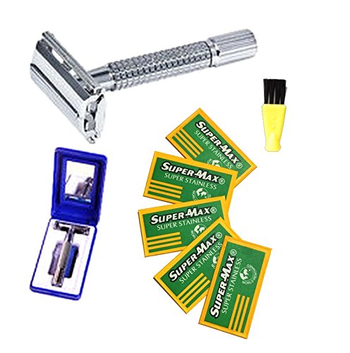 Kit includes Old Fashion Safety Shaver, Carrying Case, Cleaning Brush and a Double Edge razor blade