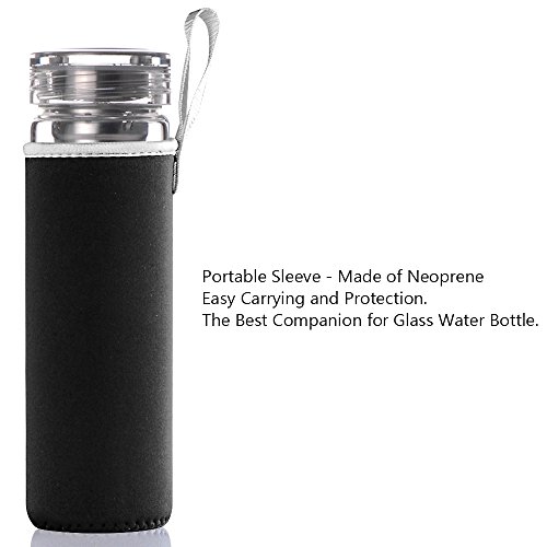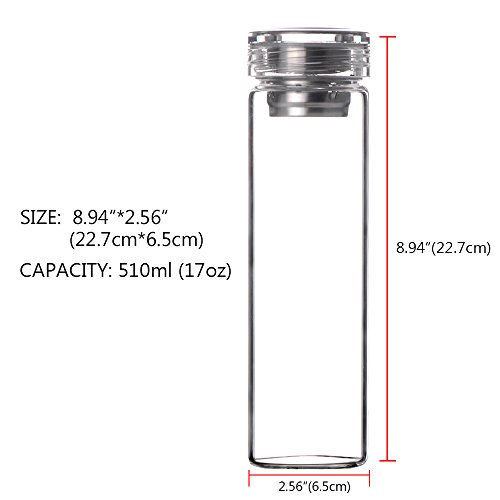 17 Ounce glass water bottle is manufactured from BPA-Free and eco-friendly, Borosilicate glass for easy cleaning and safe reuse. The cap is made of BPA-free Polypropylene plastic and stainless steel.