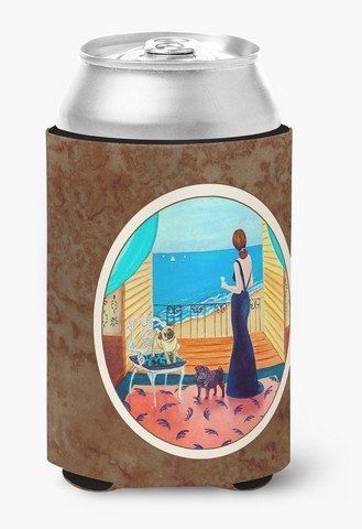 Caroline's Treasures 7133CC Lady With Her Pug Can Or Bottle Hugger, Multicolor
