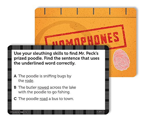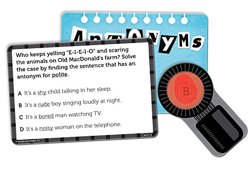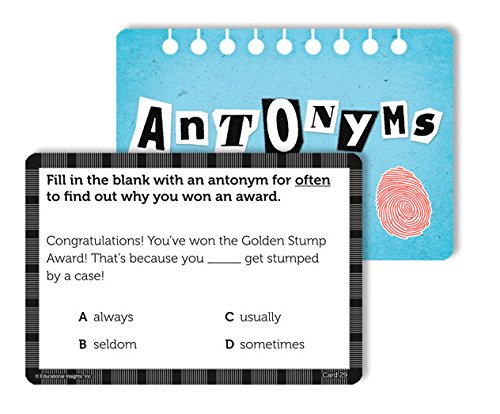- Feature : Practice synonyms, antonyms, homophones, and multiple-meaning words / Detective-themed vocabulary game / Includes 200 cards in 4 different vocabulary categories, 4 category dividers, 48 die-cut badges, special decoder card, and guide