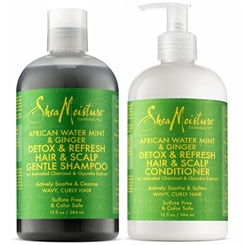 Shea Moisture, African Water Mint & Ginger – Detox Hair & Scalp Gentle Combination Set for Unisex, Shampoo 13 Fluid Ounce & Conditioner 13 Fluid Ounce