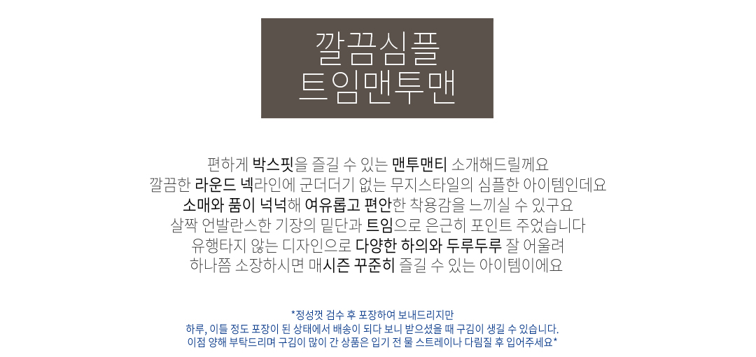 .같은 사이즈라도 체형에 따라 핏감이 조금씩 다를 수 있습니다.