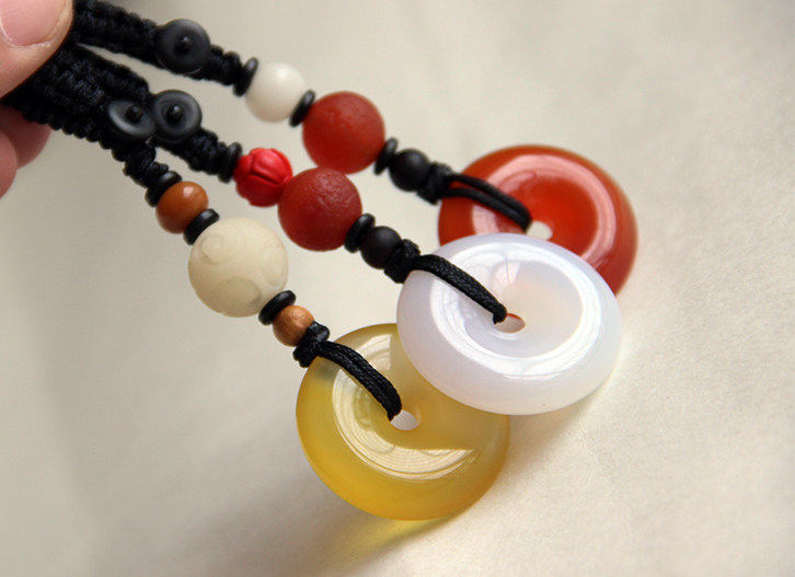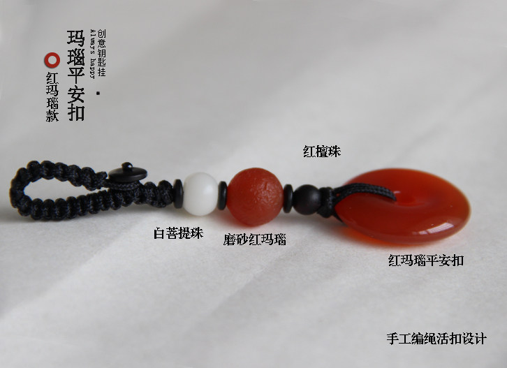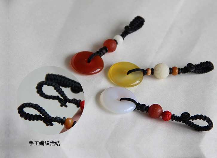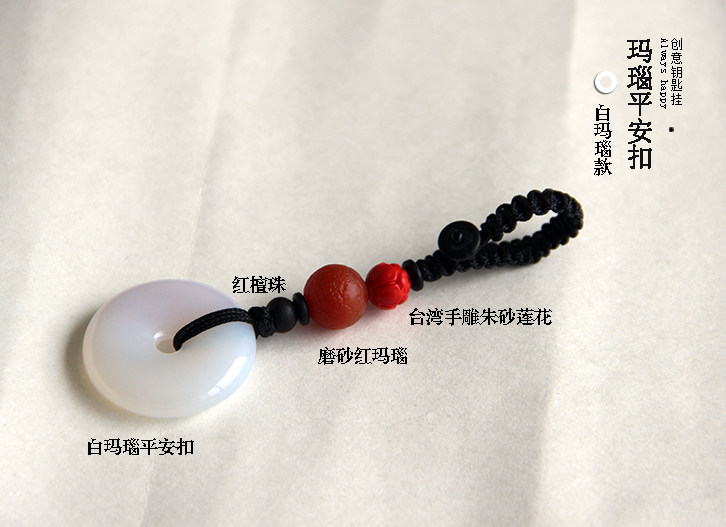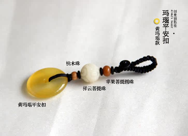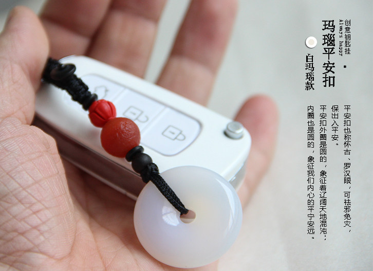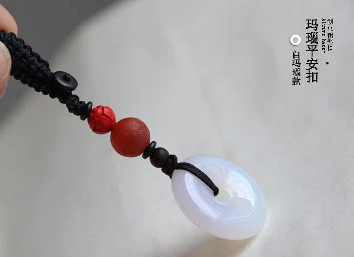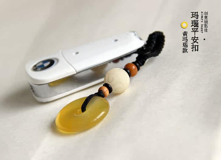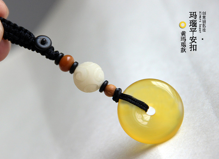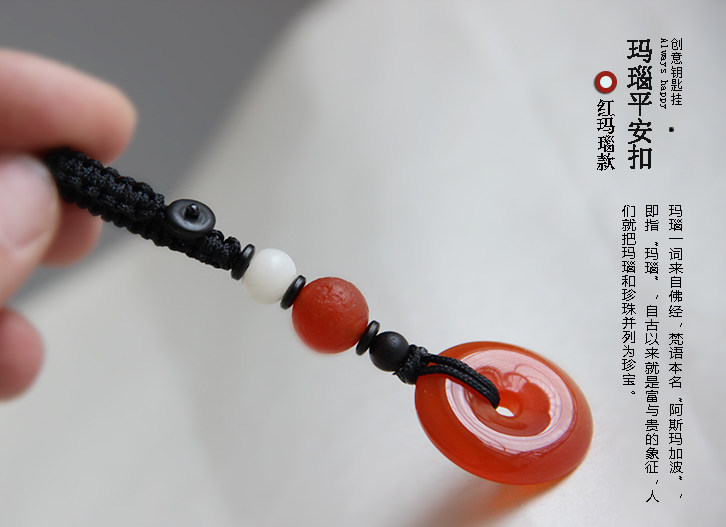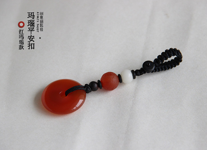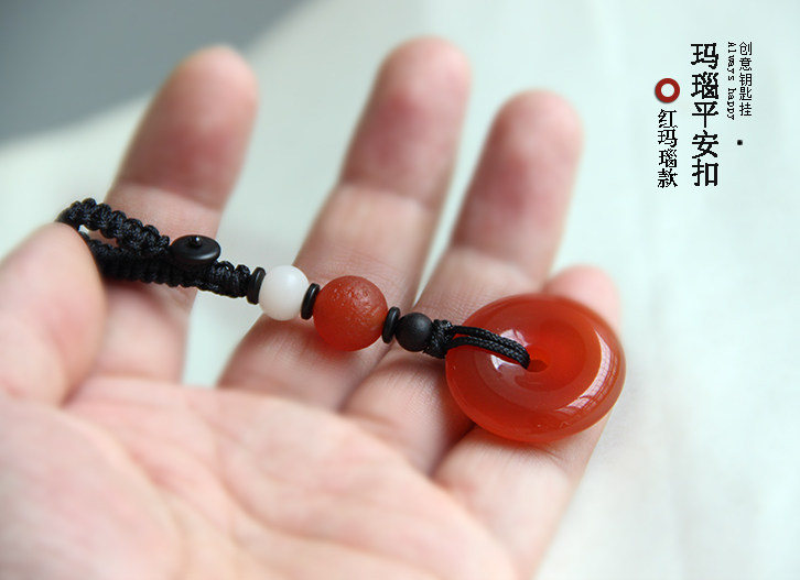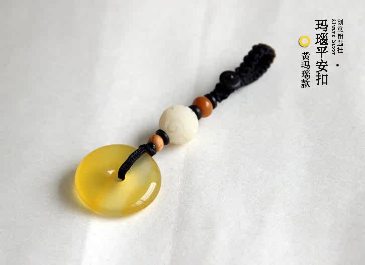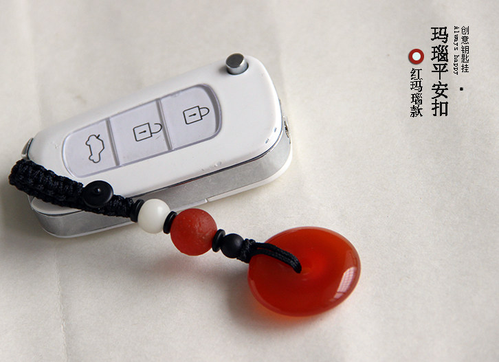 汽车钥匙挂件扣挂饰 辟邪保平安 男女士 高档 红黄白玛瑙平安扣