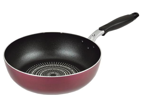 | 素材・材質 | 【表面加工】 内面:ふっ素樹脂塗膜加工、外面:焼付け塗装 【材料の種類】 本体:アルミニウム合金、はり底:ステンレス鋼(クロム16%)、取っ手:フェノール樹脂(耐熱温度150度) |