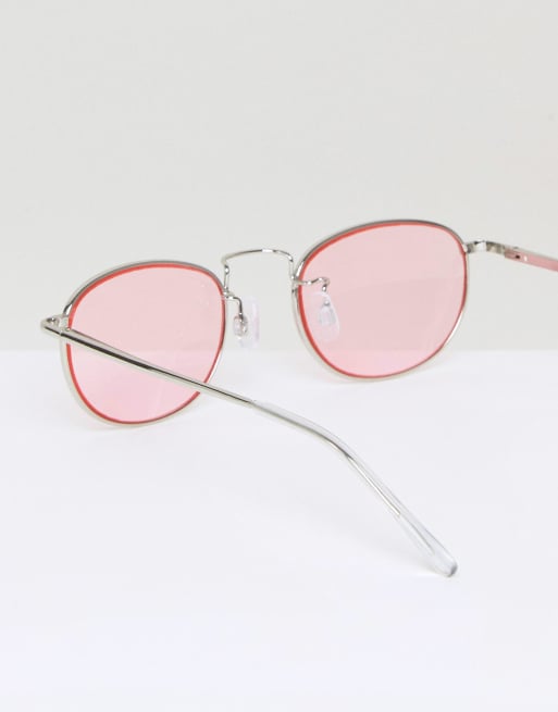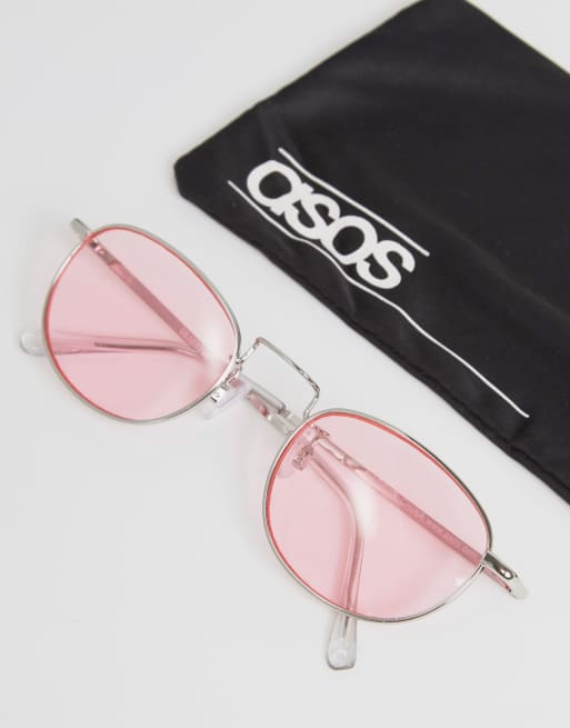 ASOS Oval Round Sunglasses in Light Pink Lens