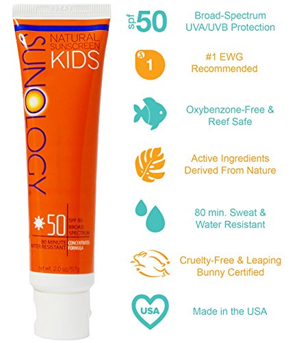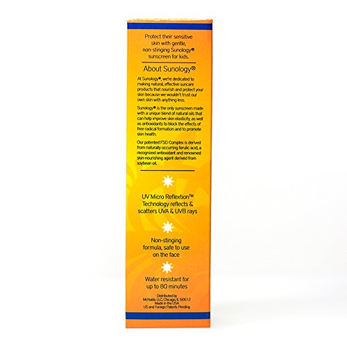 Gentle and effective mineral sunscreen for kids without oxybenzone and avobenzone. Teaching good sun safety habits early on is essential to lasting skin health. Sunology for kids is a great place to start. Formulated without parabens, perfumes, or synthetic active ingredients, Sunology provides gentle sun protection using mineral active ingredients blended with nourishing, natural moringa oil. It's gluten free, paraben free, and cruelty free sunscreen. Packaged in a conveniently travel-sized, TSA approved 2 ounce tube, Sunology fits in any purse, pack or pocket for all-the-time protection. Directions for Use: With Sunology's concentrated formula, a little goes a long way. Apply evenly to all exposed skin daily 15 minutes before sun exposure to help prevent sunburn. Re-apply every 2 hours or after swimming, excessive perspiration, or towel dryingFeature