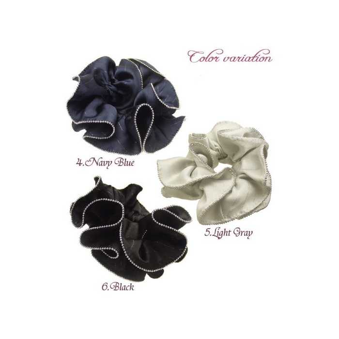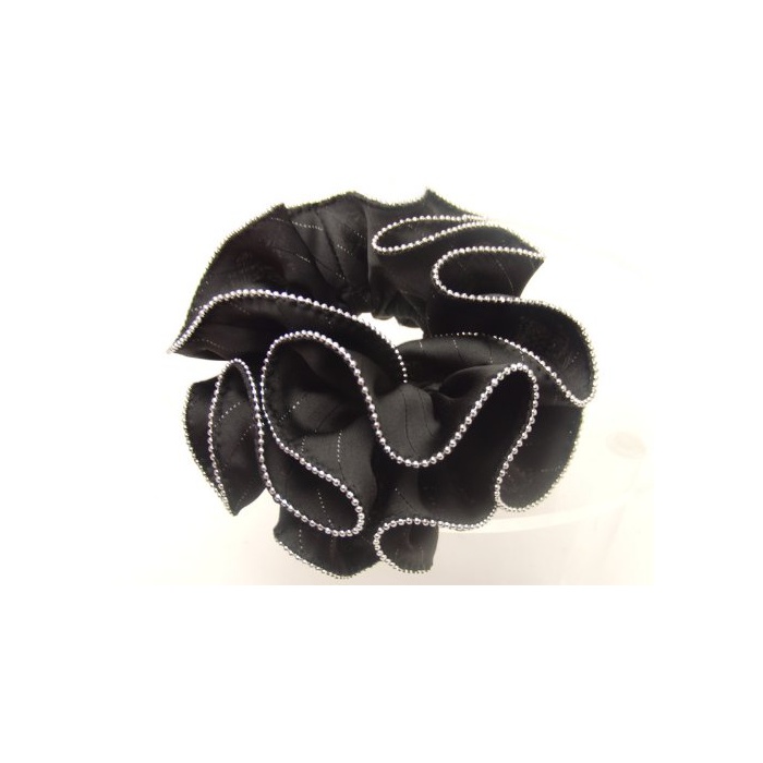 Littlemoon haglm440nnnbk (리틀 문) [프릴 새틴 라메 스트라이프 헤어 악세사리] 【슈슈】 쿠우(Qoo)《레》 블랙