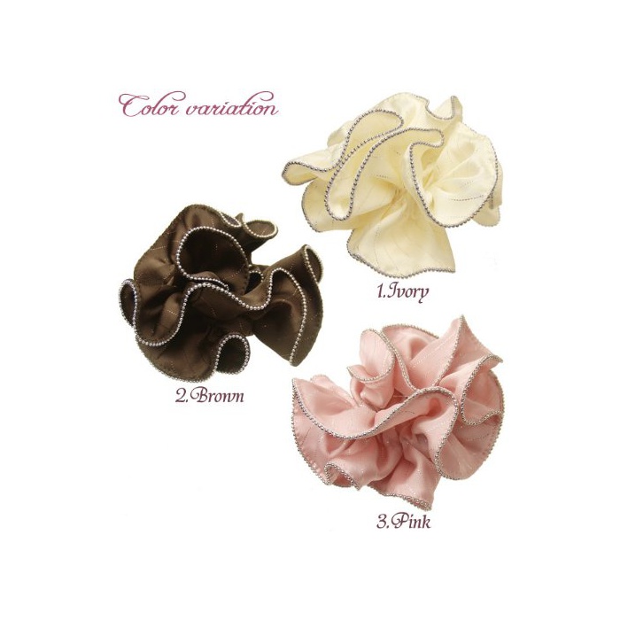 원본상품명: haglm440nn (リトルムン) [フリル サテン ラメ ストライプ スタイリッシュ ヘアアクセサリ【日送】] 【シュシュ】 クレ