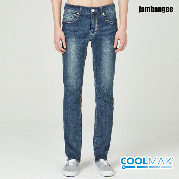 흡습성이 뛰어나 땀을 빨리 배출시켜 시원함을 느낄 수 있는 쿨맥스 소재로 로프사와 스티치 변형으로 포인트를 준 DB톤 캣 올브러쉬 워싱에 남성용 타이트 IG핏 데님스타일.