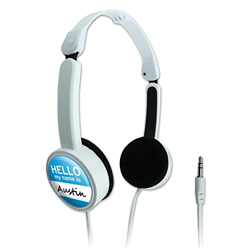 -. Binding : Electronics -. Brand : Graphics and More -. Feature : Perfect for travel or the home / Made of lightweight plastic, folds for storage / Features foam ear cushions and the resin-encased design shown / Head band size is adjustable; Cord is almost 4' long / Sold individually -. Label : Graphics and More -. Manufacturer : Graphics and More -. Model : HPHONE.WHT.31032 -. MPN : HPHONE.WHT.31032 -. PartNumber : HPHONE.WHT.31032 -. ProductGroup : Speakers -. ProductTypeName : HEADPHONES -. Publisher : Graphics and More -. Studio : Graphics and More -. Title : Novelty Travel Portable On-Ear Foldable Headphones Hello My Name Is Am-Ay - Austin Hello My Name Is