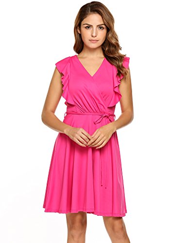 Features:V-Neck, high waist, side hidden zipper closure, with ruffles and the belt.